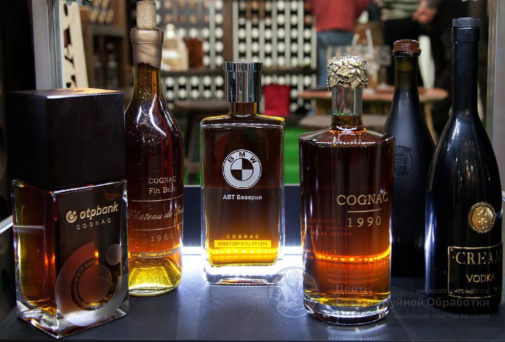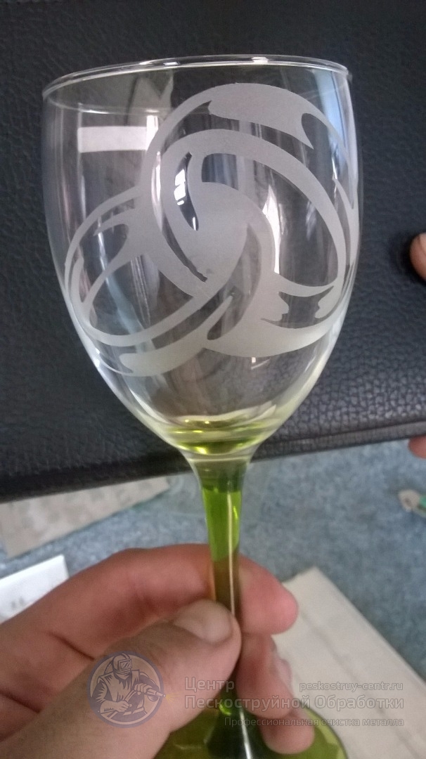 Особой популярностью среди клиентов пользуется деколирование бокалов, рюмок, стаканов с нанесением логотипа и фирменных знаков методом пескоструйной обработки.